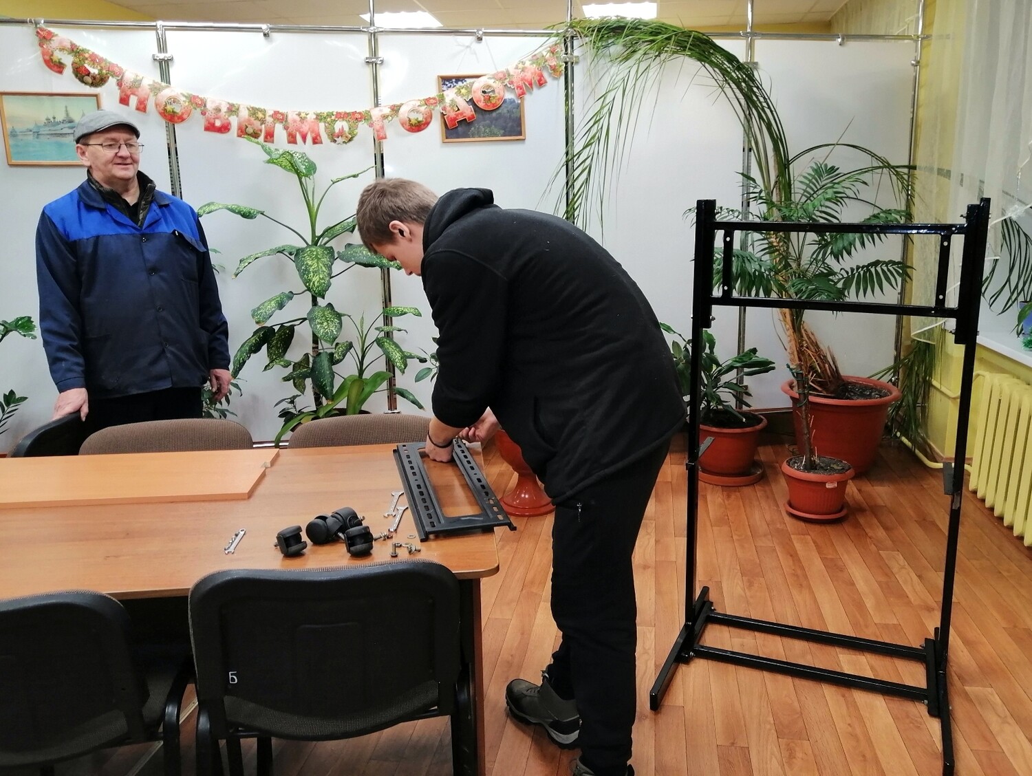 библиотеке в Технологическом колледже Императора Петра I сделали своими руками студенты группы 184404 (ЭМ-21) под руководством мастера производственного обучения Андрея Петровича Корельского - мобильную стойку для ЖК-телевизора! Теперь станет очень удобно перемещать телевизор-монитор в разные уголки читального зала для проведения библиотечных мероприятий.