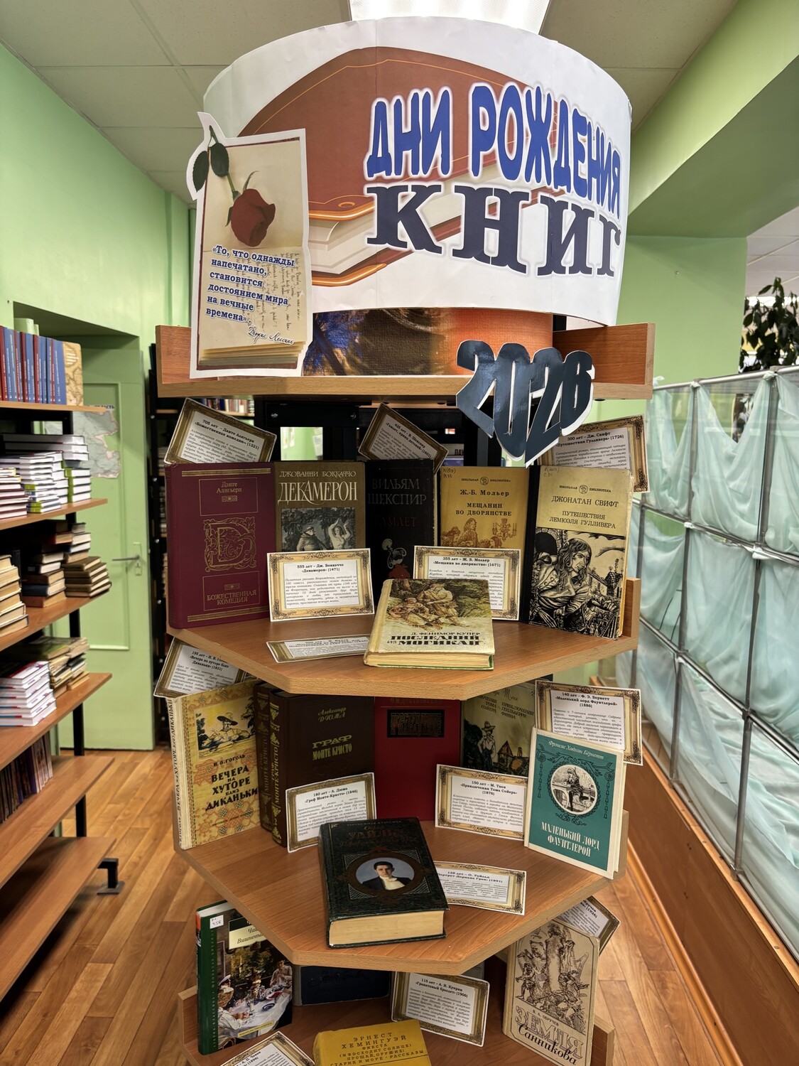 Юбилеи бывают не только у писателей, но и у сочиненных ими произведений: романов, повестей, пьес. В 2026 году отмечаются юбилеи многих величайших книг. Книжная выставка "Дни рождения книг" в библиотеке в Технологическом колледже Императора Петра I знакомит читателей с изданиями, которые всегда пользовались большим успехом. 25 замечательных книги-юбиляра доставят читателям истинное наслаждение при вдумчивом прочтении: