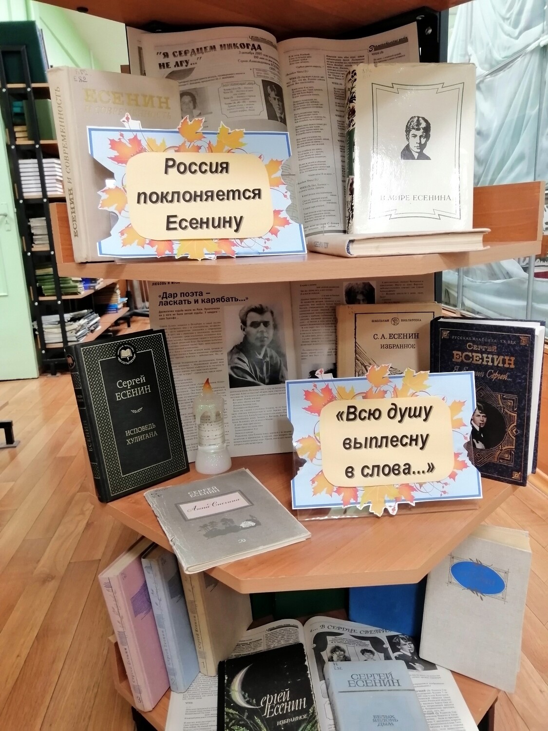 - так называется книжно-иллюстративная выставка к 130-летию знаменитого русского поэта Сергея Александровича Есенина.